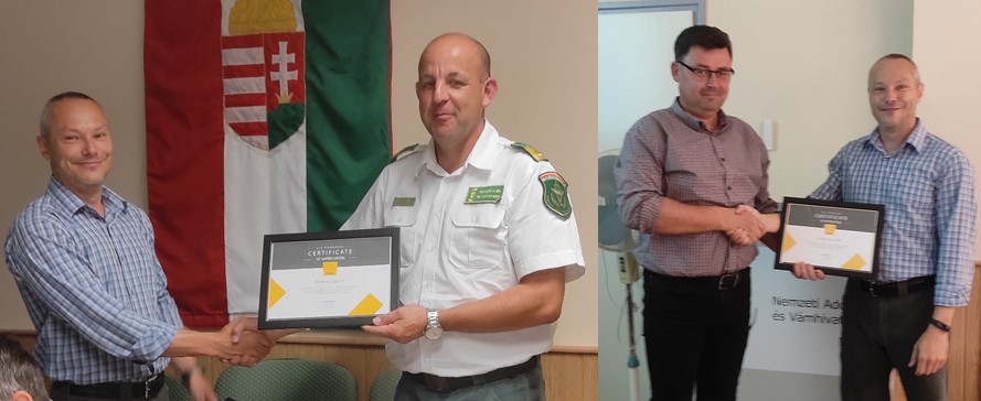 After the first Certificate was handed over to lieutenant Csaba Simon, Hungarian customs officer in 2019, the pandemic forced us to postpone the presentation of the annual Vis Probandi Hungary Certificate of Appreciation. However, excellent achiements deserve acknowledgment: we presented the Vis Probandi Certificate of Appreciations of 2020 and 2021 to László Berényi and to Ervin Kolnhofer, Hungarian customs officers for their outstanding commintment and professional excellence. Great work, Laszlo and Ervin, thank you!
